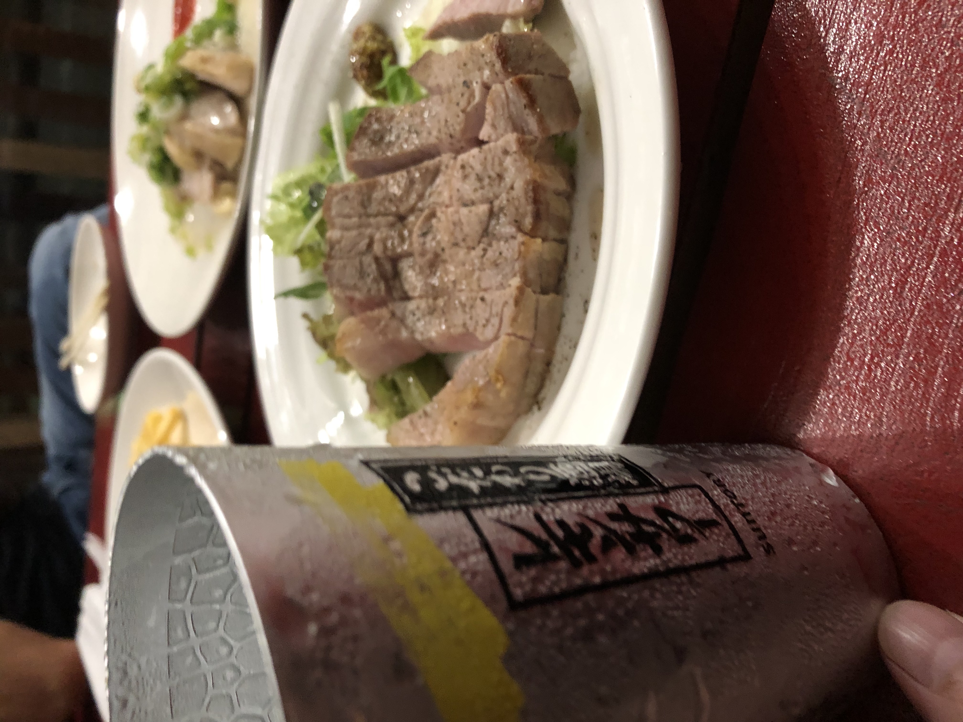 いつも行く焼き鳥大吉さんで。 このタンブラーが最高〜。 キンキンで乾杯?