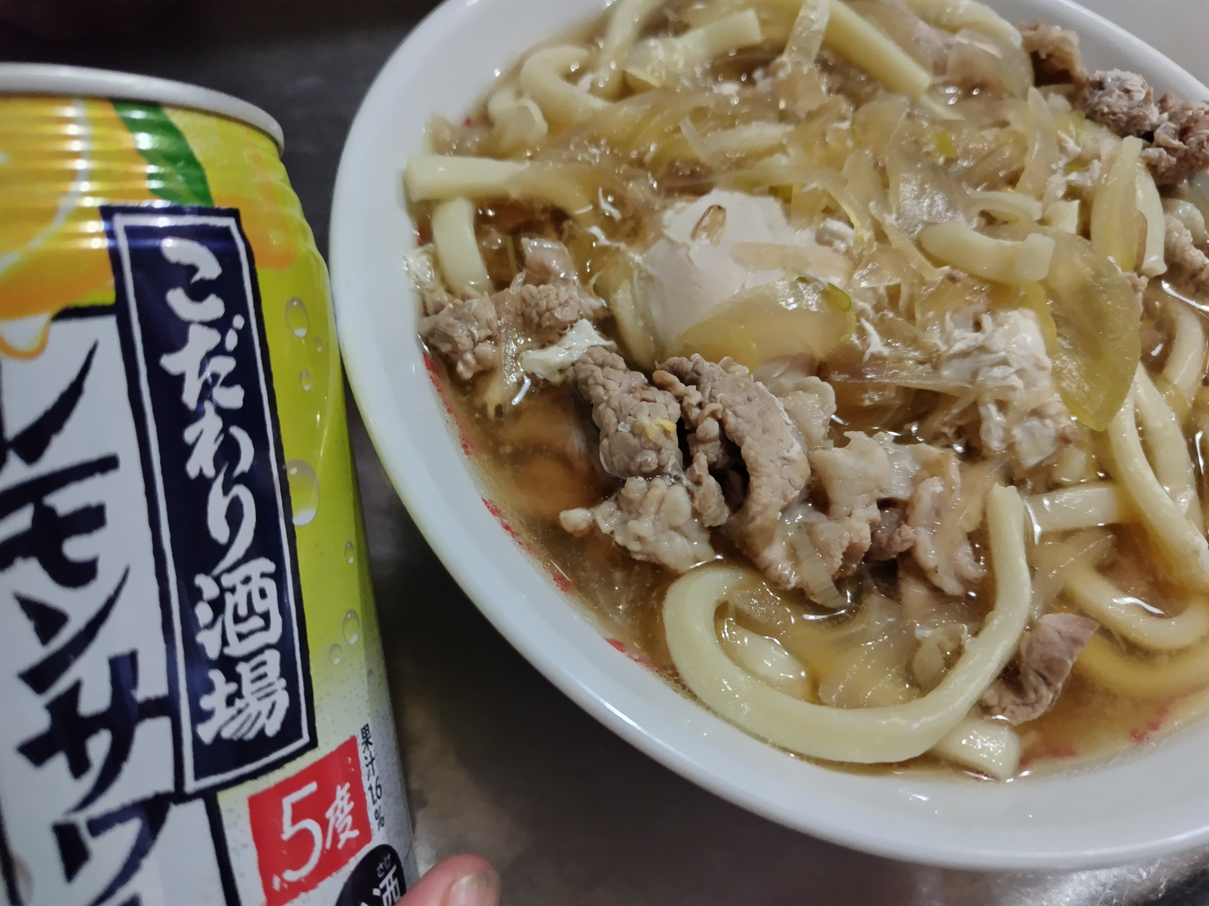 今日は熱々肉うどん玉子入り🥳かんぱーいぶー