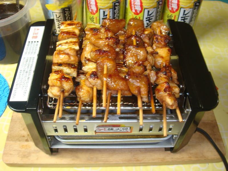 喜びのあまりネギマ・鶏皮・鶏モモを焼いてカンパ~イ!!